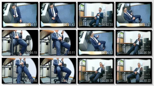 仕掛けカメラがあるとは知らず、休憩時間に事務所でオナニーをし始めてしまう研修員!まわりの物音を気にしながらもスマホのエロ動画に夢中のあまり、自分のスラックスに大量精子をぶちまける!